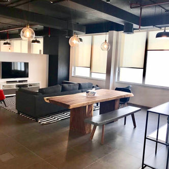 We covered a large walls with concrete and brick wall paper, to create a striking industrial feel. We delivered 4,900 sq ft in just 6 weeks including all DCD and TECOM approvals.